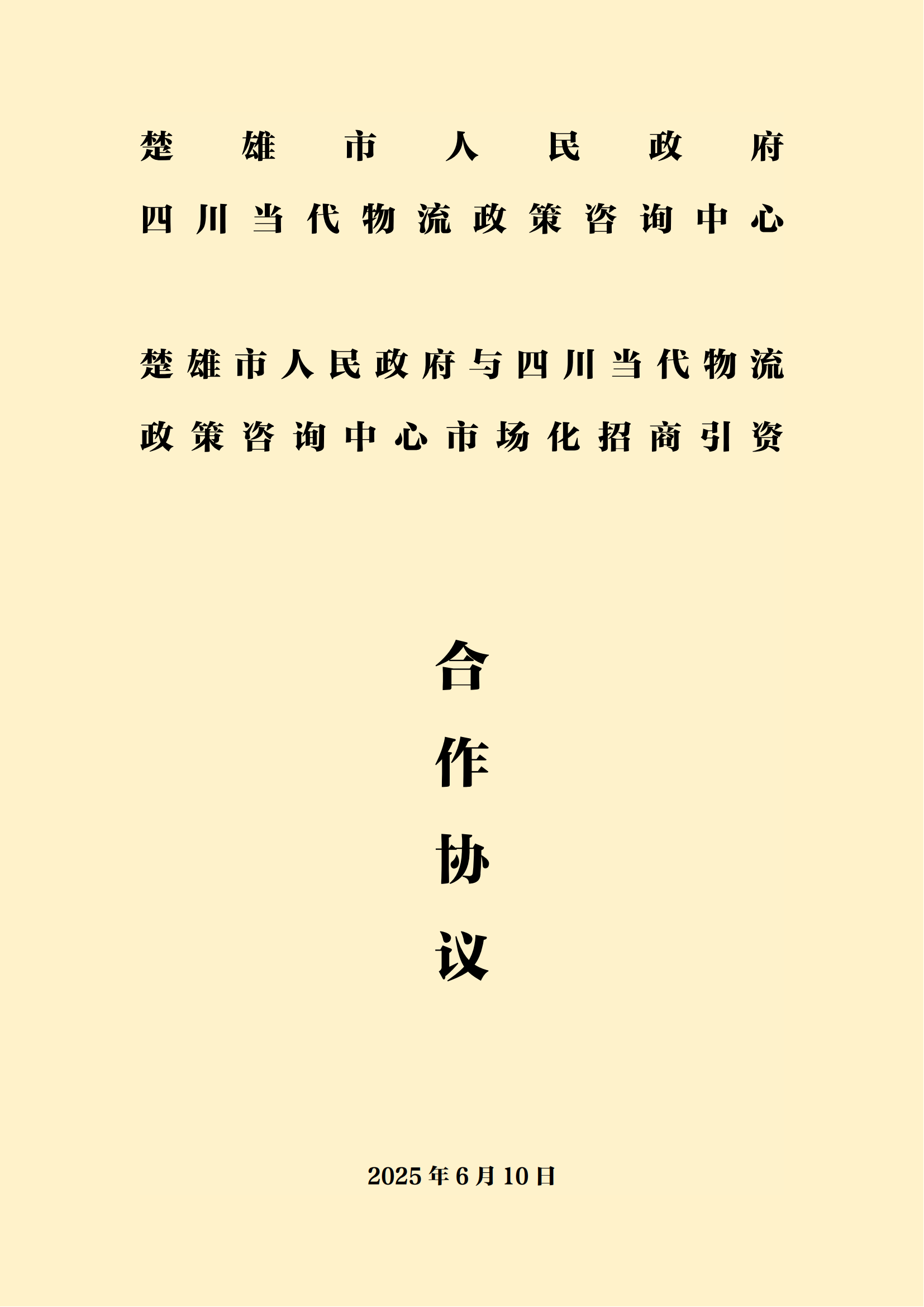楚雄市人民政府与四川当代物流政策咨询中心市场化招商引资合作